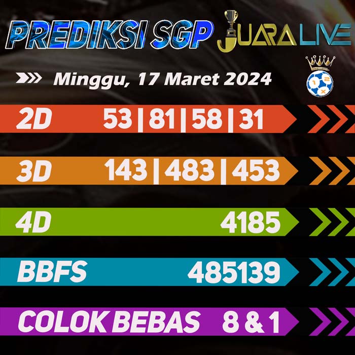 Prediksi SGP Jitu Hari Ini Minggu 17 Maret 2024