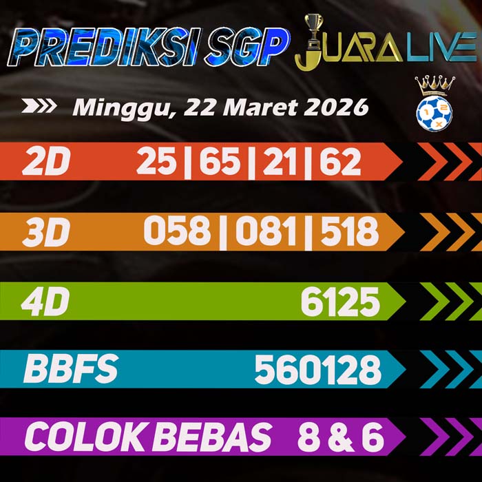 Prediksi SGP Jitu Hari Ini Minggu 22 Maret 2026