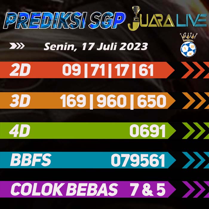 Bocoran Prediksi Togel Prediksi SGP Jitu JP, Prediksi Togel SGP Senin 17 Juli 2023, Bocoran Prediksi SGP Jitu Senin 17 Juli 2023, Bocoran SGP, Jitu SGP JP Senin 17 Juli 2023, Kode bocoran SGP Senin 17 Juli 2023.